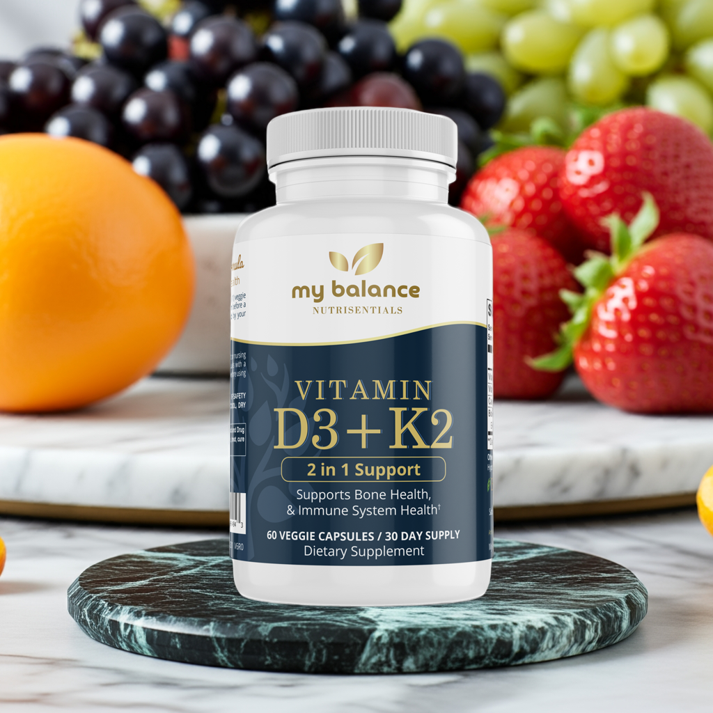 Support your daily wellness routine with a smart formula that works harder for you— Vitamin D3 + K2 + BioPerine® by My Balance.